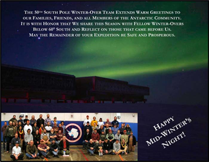 Hello to everyone, and best wishes for MidWinter’s Day! I realize you have been fed (quite well, from all reports) and rested (hopefully….) during this past weekend. But I did want to send a message for the 21st and thank you all for the efforts you’ve put forth this winter. Admittedly I think about how glad I am to be home when I am able to see my family, go for a walk in the mountains, take the opportunity to go and do things on a whim. However, I also look at the pictures of the auroras that have been sent north, I hear a story or two about the community activities, or someone’s experience particular to winter and I have to say that I’m a bit jealous, and will be of every winter crew through time. There is something about the winter at Pole that you can’t really explain to anyone who hasn’t been there, and felt for themselves. It may be something different for every person, but there is something…..it sticks with you and sets you a little apart. I am happy that you have the opportunity to find your “something”. I’m also incredibly appreciative that you are there keeping the place running, moving ahead with projects, letting us know what we need to do on occasion, and just generally taking care of business. Thank you all for all that you do, and for taking care of each other. Please know that it is indeed recognized, even though we don’t say it enough. I hope everyone looks forward to the remaining months, as we count down the planning season here; and the winter there… and start to approach that frenetic time of opening, turnover, hellos and goodbyes. It will happen so fast, and yet sometimes seem so slow in coming. Just like everything at Pole, a study in contradictions. Thank you again for your dedication, for keeping your good spirits, and for dealing with our constant questions. Celebrate the day, and look forward to the sun! Take care of yourselves, and each other, bk